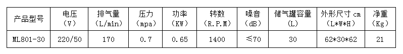 8.本產品為臺冠ML801-30無油空氣壓縮機,嚴禁加油潤滑。